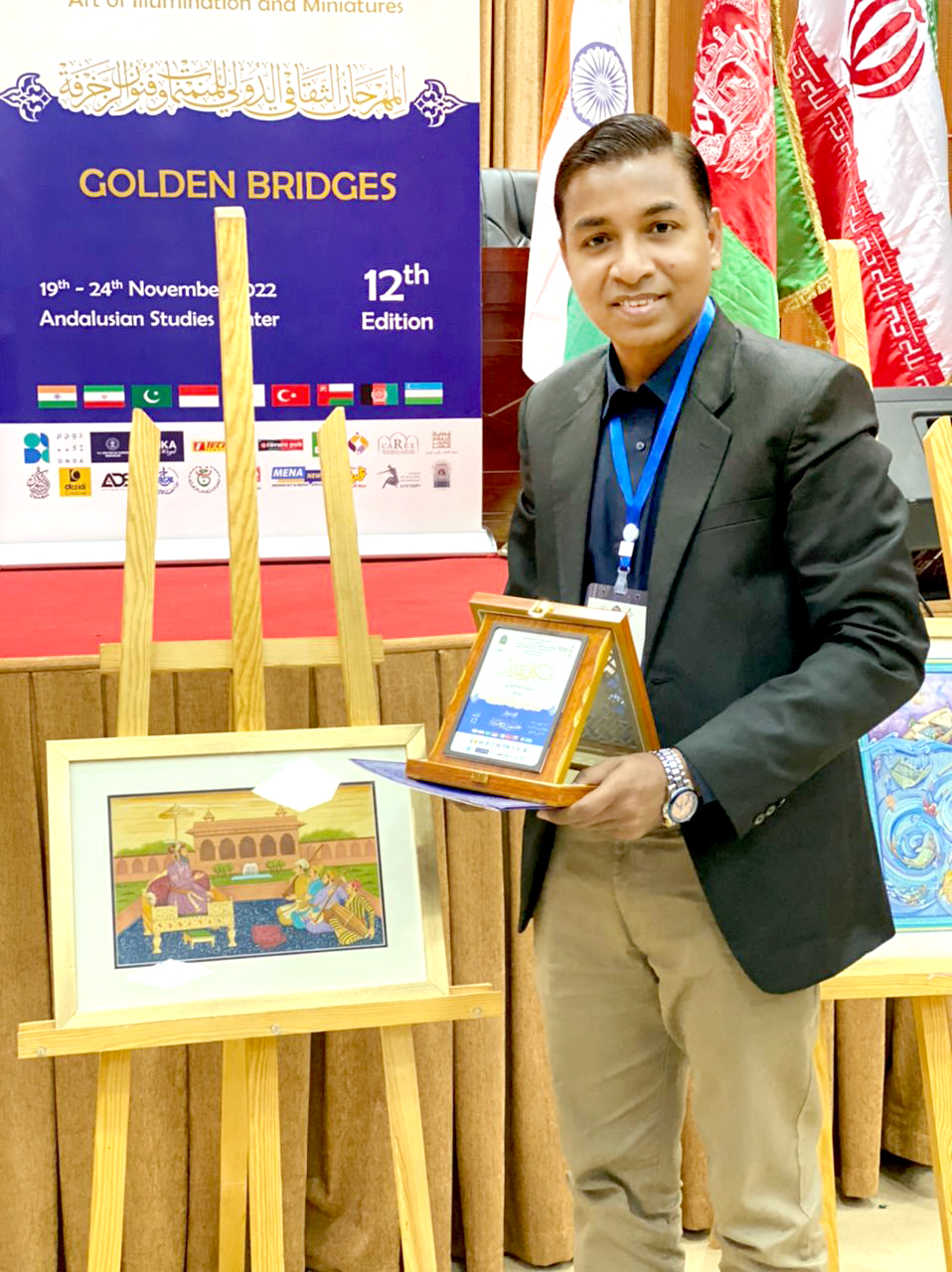 Now in 2022 he has been 2nd Awarded by 12th Algeria Miniature Art Festival 2022, Algeria. Alhamdulillah he is only one artist selected from Pakistan in 12th Algeria Miniature Art Festival 2022 as a Pakistani representative.